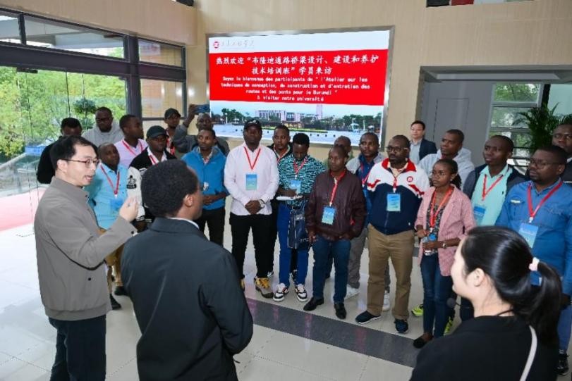 接待了布隆迪道路桥梁设计、建设和养护技术培训班的 24 名专业人员。代表团通过实地考察科研设施、参与技术研讨及实践体验,系统了解中国土木工程领域的创新成果与技术应用。