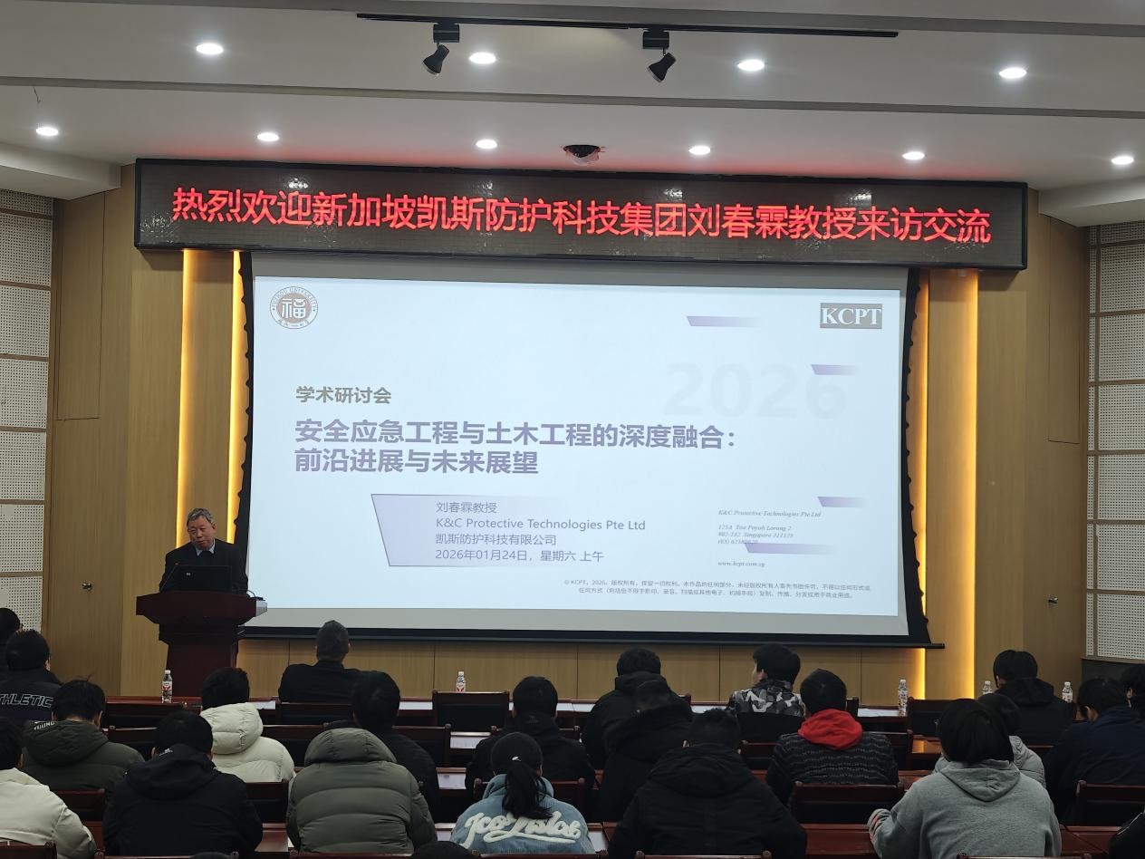 在一楼多功能厅举办了以“安全应急工程与土木工程的深度融合:前沿进展与未来展望”为主题的学术讲座。本次讲座邀请新加坡凯斯防护科技集团刘春霖教授担任报告人,学院师生代表到场参与交流。