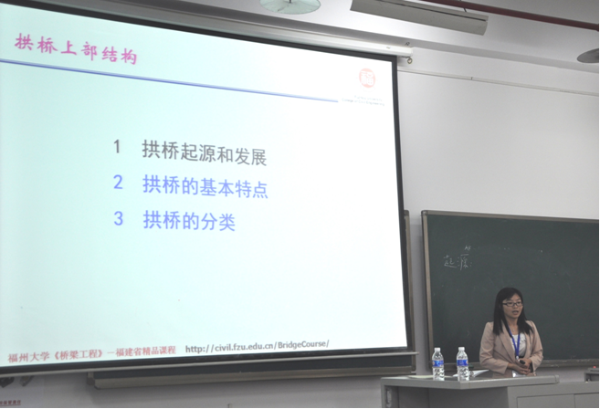 10月24日下午,会议组组织了13所高校的青年教师进行《桥梁工程》现场授课展示活动,参与授课的院校有同济大学、西南交通大学、福州大学、重庆交通大学、中南大学、长沙理工大学、长安大学、湖南大学、东南大学、北京交通大学、兰州交通大学、武汉理工大学、石家庄铁道大学等。我校教师王文平讲授了题目为“拱桥上部结构”的教学演示,其精美的课件、灵活的教学手段、清晰的思路、丰富的言辞得到了参会资深教师一致好评,为与会代表就如何上好《桥梁工程》及相关课程,展示了丰富而精彩的一课。