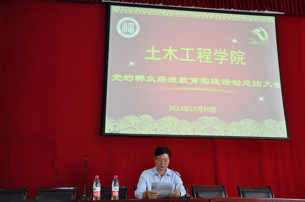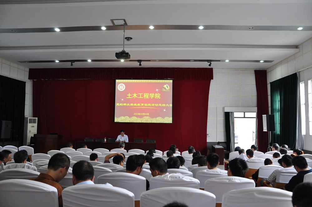于建筑学院多功能厅隆重召开党的群众路线教育实践活动总结大会。土木工程学院领导班子成员、教育实践活动领导小组成员、全体教工党员、学生党员代表、系所负责人、科级以上干部、非中共党员教职工代表等100余人参会,会议由陈宝春院长主持。