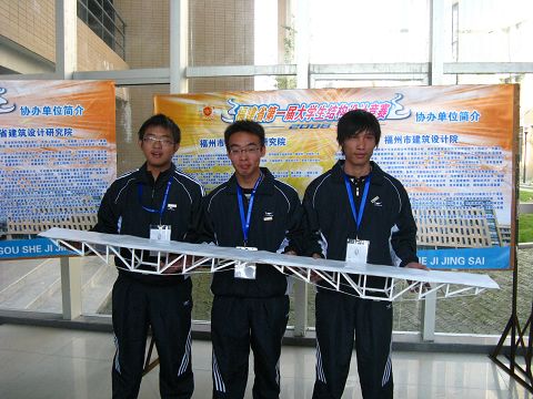 06级的三支队伍代表福州大学参加了此次竞赛,经过激烈角逐,最终福大一队和福大三队获得了二等奖,福大二队获得了三等奖的佳绩。赛后,土木学院院长陈宝春教授对各个参赛作品做出了点评。